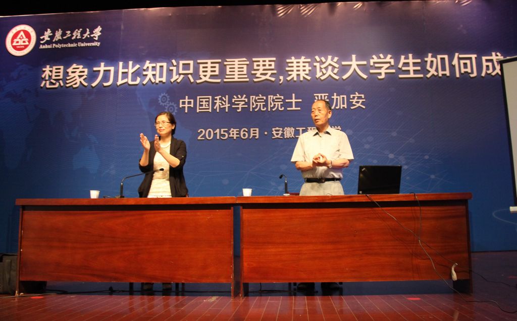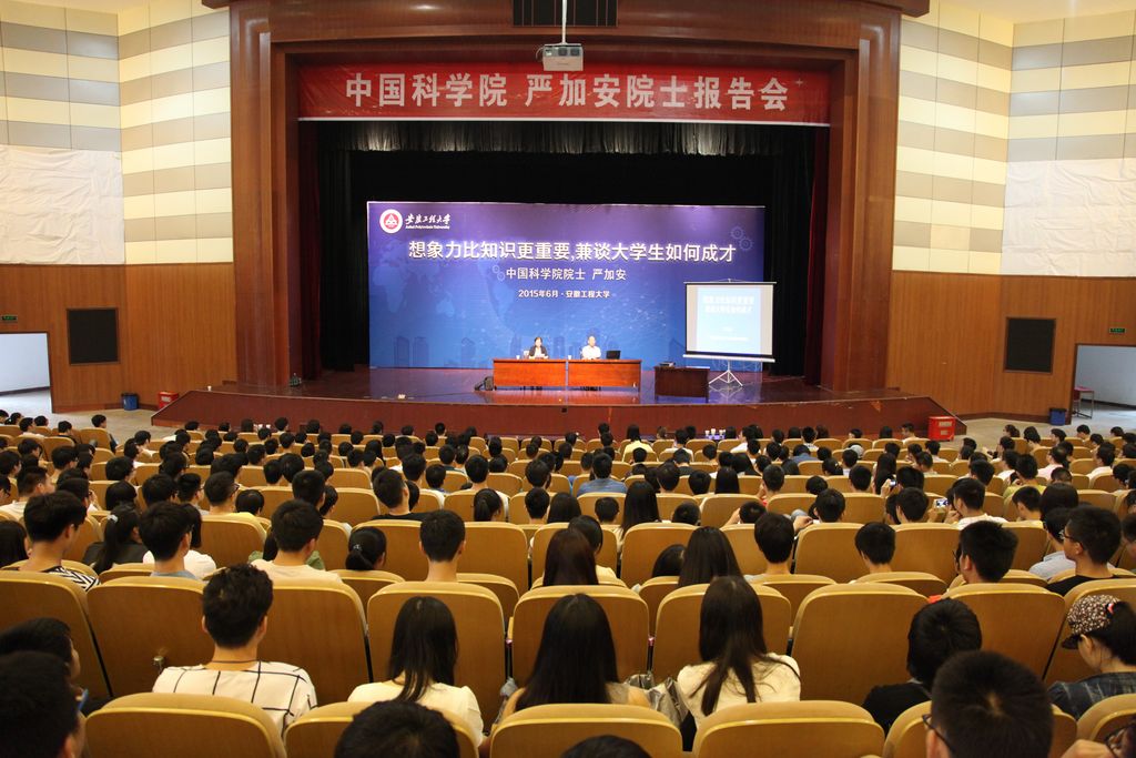 6月15日下午,学校师生活动中心大礼堂座无虚席。著名数学家、中国科学院院士严加安应邀为大学生作“想象力比知识更重要,兼谈大学生如何成才”的演讲报告,来自各学院1200余名学生代表面对面地聆听了演讲。校党委副书记苏国红出席了报告会。