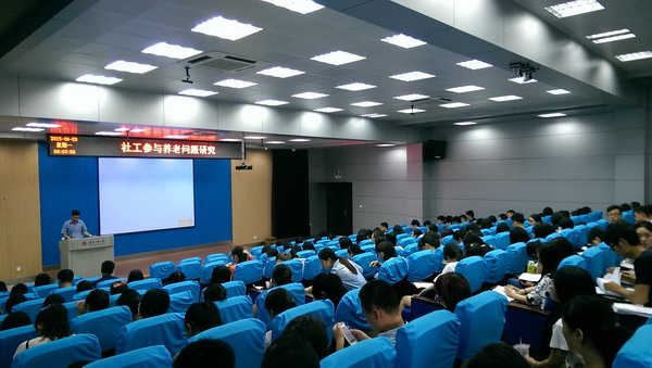 魏安阳结合自己在民政系统多年而丰富的工作经验,为同学们带来了一场通俗易懂、深入浅出并让人印象深刻的讲座。报告中说到,中国老龄化进程的严峻形势,要求我们必须立足基本国情,按照政府主导、政策扶持、社会参与、市场推动的原则,继续坚定不移地构建与人口老龄化进程相适应,与经济社会发展水平相协调,以居家为基础、社区为依托、机构为支撑,具有中国特色的适度普惠型的养老服务体系,让全体老年人共享改革发展成果,安享晚年生活。在提升养老服务发展基础能力的过程中社会工作者扮演着重要的角色,并承担着巨大的任务:一是强化养老服务制度保障;二是建立适度普惠老年福利制度;三是建立健全养老服务体系。