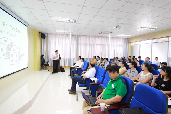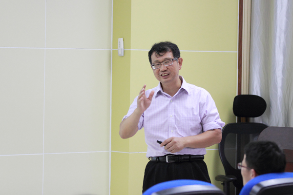 报告会于下午三点准时开始,胡耀忠教授首先从大家关心的股票市场开始,进一步引出了具有内幕的金融市场这一引人关注的问题。然后,他重点分析了如何借助随机分析的工具来刻画具有内幕的市场交易模型。最后,他介绍了最优投资时间选取的精美结果。