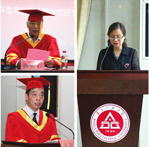 当学子得知领导会给所有参加典礼的同学拨穗时,不少同学退了火车票,改变行程,只想亲自感受这一庄严时刻;当气势恢宏的音乐响起时,体育学院师生们通过传统文化“汉礼”仪式,演绎了庄重新颖的学位授予仪式;当人文学院的毕业生家长代表看着孩子们穿上学士服、戴上学士帽,幸福流淌在他们的脸上;当纺服学院的《下一站,远方》、建工学院的《匆匆那年》、生化学院的《我们一起走过的青春》等视频播放时,同学们看着大屏幕上滚动着的青春年华,不禁感慨万千,生工111的汪婷忍不住喊出:“我们都宁愿毕业设计再难一点,老师您再严一点,时光再慢一点,好让我们待得再久一点!”