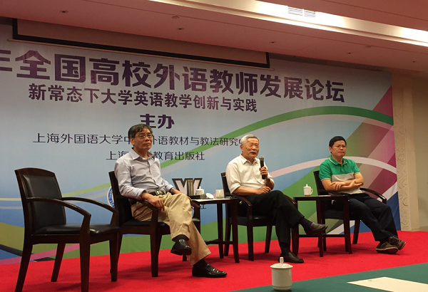 论坛的最后半天,大会组委会以访谈的形式邀请三位教授同台,与参会教师一起探讨大学英语教学的新常态、新目标、新出路,探索外语教师的职业发展,研究提升外语教学质量的技能与方法。现场气氛热烈,互动效果明显,与会教师纷纷表示受益匪浅。