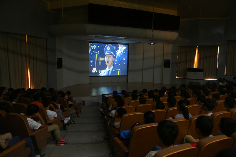 铭记历史,缅怀先烈,珍爱和平,开创未来。9月3日,中国人民抗日战争暨世界反法西斯战争胜利70周年纪念活动在北京天安门广场举行。我校组织青年学生在学术报告厅、师生活动中心等场所,通过电视、网络直播方式观看了阅兵仪式。校党委书记陈其工,校党委副书记苏国红,党委宣传部、学生处、团委等部门负责人与各学院团干和300余名团员青年齐聚学术报告厅,收看阅兵仪式盛况并参加学生座谈会。