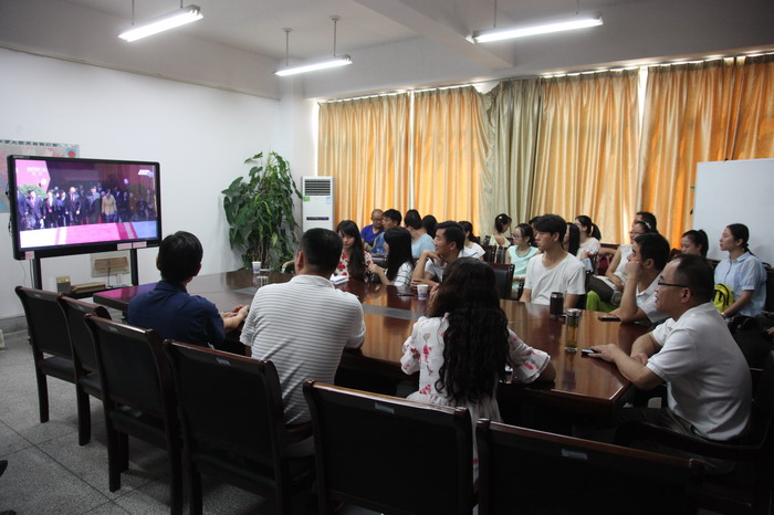 在校思政部会议室内,我校思政部教师集体观看了电视直播。大家一致认为,要牢记历史,勿忘国耻,积极维护世界和平,肩负起时代赋予的强国梦,共同为实现中华民族的伟大复兴而努力。会后,思政课教师还将就本次纪念大会积极开展研讨。