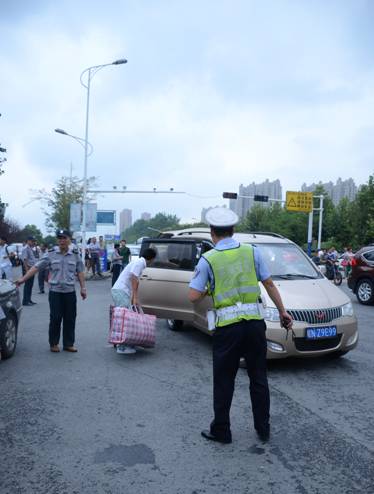 校园内外的安全最为重要,而这样的安全是来之不易的。天还没亮,保安人员就已经到岗了,在他们的指引下,送新生的私家车井然有序。在报到的这两天,学校大门口采取交通管制措施——4号半封闭,5号全封闭。与往年相比,今年还特地开设北门为迎新应急通道,保障迎新当天校园内外交通的通畅。针对校园内的突发状况,保卫处也提前做好了应急方案。