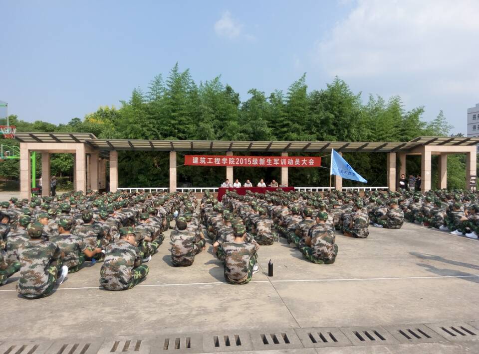 学院党委副书记李烨在军训动员讲话中指出,在隆重纪念中国人民抗日战争暨世界反法西斯战争胜利70周年之际组织2015级新生军训,是推进素质教育、培育创新型人才的客观要求,也是加强国防建设、提高国防意识、巩固后备力量的重要举措。他向全体新生提出三点要求:一是要服从领导,听从指挥,讲纪律,讲团结,讲文明,讲风格,自觉接受军事化管理,虚心学习部队的好思想、好作风、好传统;二是在军训期间严格按军队条令执行,统一着装,统一整队,统一行动,军训中严格控制请假,如确属实际需要,必须履行请假手续,因病不能参加军训的要办理免训手续;三是要注意军训安全,参训学生要严格遵守安全管理规定,提高安全意识,辅导员要全天候在军训现场,了解学生思想动态,协助教官做好军训工作。随后,学院团委副书记刘海涛解读了学生军训先进集体、先进个人评比办法。新生辅导员承梓惠、黄贤君宣读了军训序列编制、班排长名单、军训日程安排和军训计划等。新生代表建筑152班姚思凡同学在大会上发言,表示一定要努力拼搏,刻苦训练,发扬不怕苦、不怕累的精神,争取在军训中展现新“建工人”青春风采。
