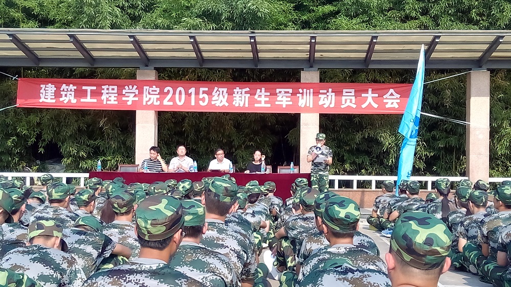 秋风飒爽,丹桂飘香。9月7日下午,建筑工程学院2015级新生军训动员大会在风雨操场前篮球场召开。全体新生身着统一军装,以军训排为单位,整齐列队。学院党政领导徐达奇、陆峰、李烨、何芝仙出席,新生辅导员参加大会。大会由学院团委副书记刘海涛主持。