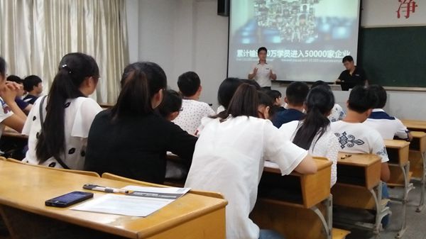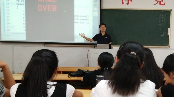 王洋首先从小游戏程序驱动直入程序设计核心,现场展示面向对象程序设计的技巧,一开始就将同学们的兴趣和注意力调动起来。他通过生活中的一些小例子,揭示了程序中的一些理论规律,并针对同学们已经学过专业课的基本概念,讲述了自己独特的见解,纠正了同学们容易出现的错误认识;通过实际的编程操作给同学们带来了更为直观的感受,漂亮的星空、好玩的雷电游戏等多样化的应用操作将现场气氛瞬间推向了高潮。最后,王洋播放了达内公司的宣传视频,使同学们进一步了解企业招聘方面的信息。整个宣讲会在轻松活跃的氛围中进行,同学们积极提问,王洋耐心细致一一解答。