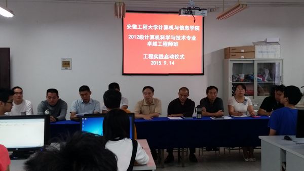 9月14日上午,计算机与信息学院2012级计算机科学与技术专业卓越工程师班工程实践启动仪式在B座408计算机工程教育实践基地(校内)举行。易通信息技术有限公司技术总监汪建中、院长周鸣争、院党委书记邬海量、副院长汪军、院党委副书记章靖平以及工程实践校内指导教师和2012级卓越工程师班学生共同参加了本次仪式,仪式由汪军主持。