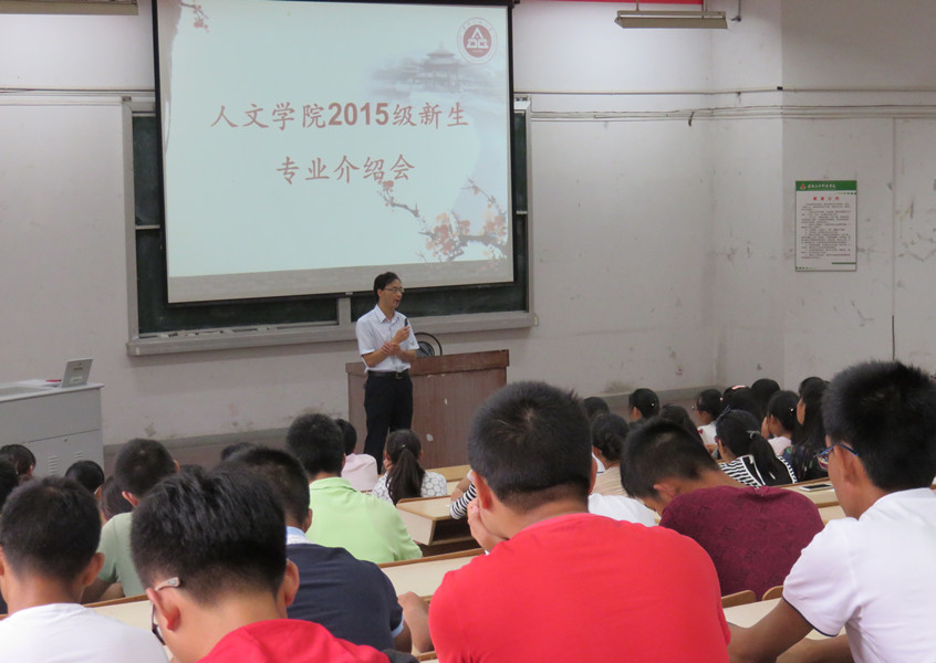 为帮助2015级新生全面了解所学专业,更快更好地适应大学学习生活,合理规划大学生涯,9月19日上午,人文学院在2教报告厅组织召开了新生专业介绍会,人文学院党委书记伊长文、副院长刘军、副书记金艾裙、行政管理系主任赵宏斌、法学系主任杜蓓蕾以及2015级全体新生到场参加,会议由伊长文主持。