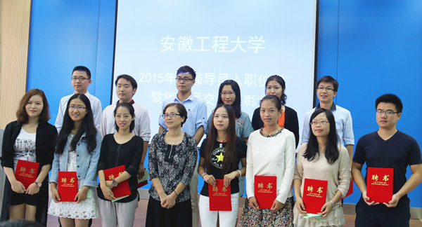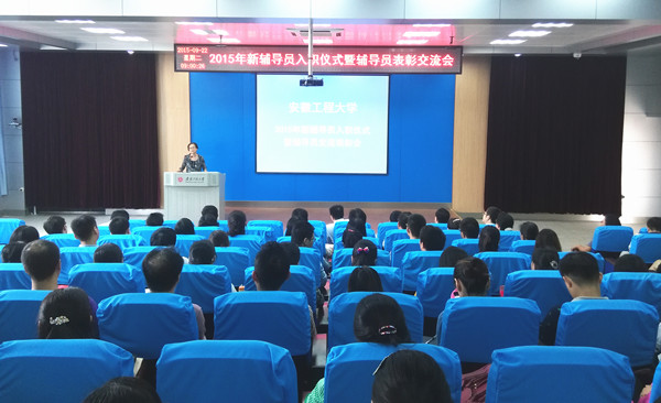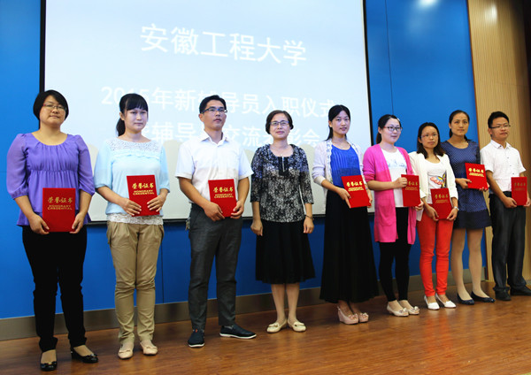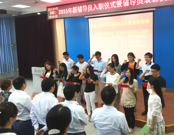 入职仪式上,苏国红为新入职的辅导员颁发了聘书,省辅导员年度人物、校首届鑫龙奖教金获得者、纺服学院辅导员毕亚琴带领新辅导员进行了入职宣誓,全体与会人员重温誓词并见证这一庄严的时刻,新生代表为新辅导员送上了鲜花。2015年新辅导员代表、电气工程学院辅导员黎新宏对一个月以来的辅导员工作的体验和感受进行了分享,表达了做好辅导员的决心。