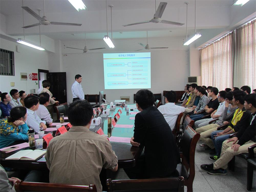 薛正莲首先对金葆康等一行的到来表示热烈欢迎。随后,陶庭先介绍了学校和学院专业设置与建设情况,陶玉贵、吴之传分别就学院专业、学科建设等总体情况以及应化、化工和高分子专业学科发展和科研情况做了介绍。最后,金葆康介绍了安徽大学化学化工学院学科建设、团队建设情况,并向与会师生讲解了安徽大学化学化工学院实验中心建设与发展、专业建设、研究生招生等情况。
