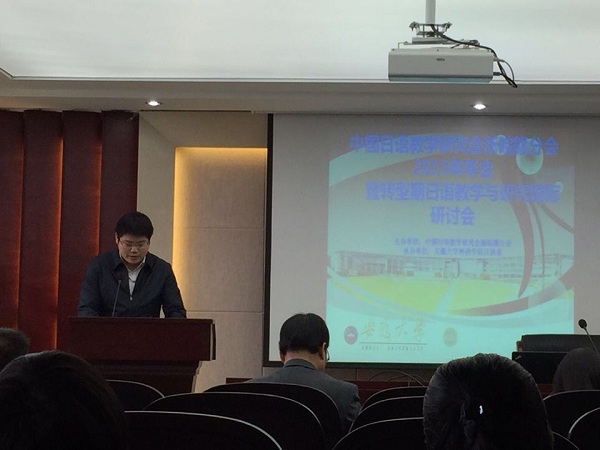 本次大会围绕“转型期的日语教学研究与发展”的主题展开研讨。中国日语教学研究会副会长周异夫教授、浙皖赣分会会长王宝平教授、日本二松学舍大学文学部长江藤茂博教授、名古屋大学国际言语文化研究科负责人福田真人教授分别作了发言,就中日交流、日本文化研究、日语专业教学以及日本的中国语学等内容进行了深入探讨。他们的发言高屋建瓴,视野宽广,非常具有启发性。随后,与会人员围绕“语言、翻译”、“文学、文化”、“教学、教改”等议题进行了分论坛发言与讨论,部分高校日语系负责人还介绍了各自院校日语系的专业建设情况。童富智作为分论坛秘书,总结了“语言、翻译”组的发言与讨论。在研讨会上,我校三位教师积极发表自己的学术观点,并与参会的同行在专业建设、人才培养及存在的问题进行了深入交流,与会专家对我校新办日语专业的人才培养成果给予了充分的肯定和鼓励。