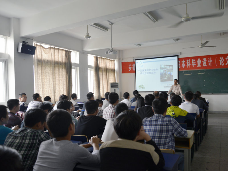 10月26日下午,由纺织服装学院、科技处共同主办的企业家导学报告会在纺服学院多媒体教室举行。连云港柏德实业有限公司总经理马敬华作了《中国医用防护无纺布现状及发展趋势》主题报告,非织造材料与工程专业的学生和部分专业教师参加了报告会。报告会由学院党委副书记孙宏义主持。