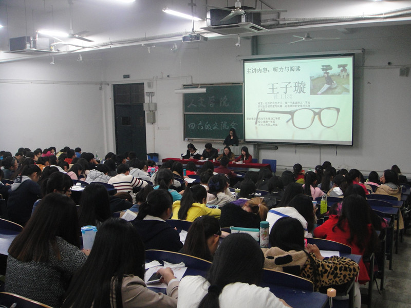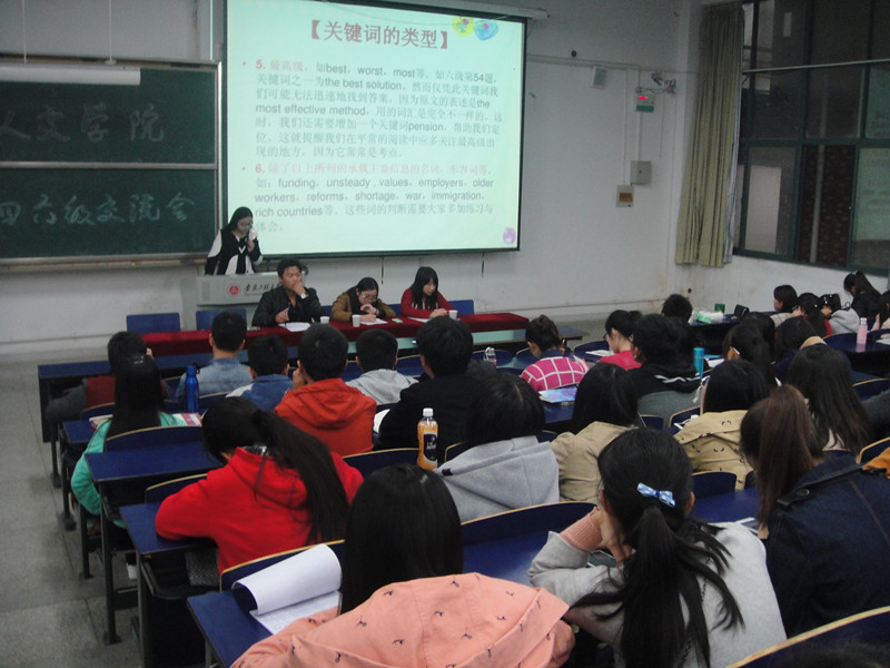 为培养大一新生对英语的兴趣,提高同学们学习英语的效率,更好地备战四六级考试,人文学院于10月29日晚在6教213举办英语四六级交流会。本次交流会特邀董雷、侯宏伟、王子璇、张梦雨四位优秀学长为大一新生传授经验。