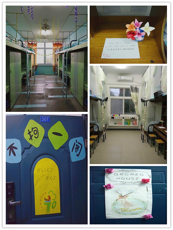 为推进寝室文化建设,提高寝室生活品质,营造良好的室风学风,外国语学院2015级新生寝室文化创意大赛于11月4日圆满结束,女生9#213和男生13#307获得一等奖。