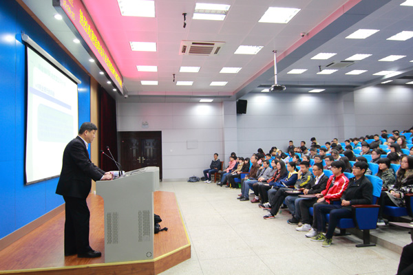 2015年11月11日下午,应数理学院邀请,中国工商银行芜湖分行行长、党委书记钱晓东为我院师生做了《银行风险管理与实践》的学术报告。报告会在5教117录播教室举行,报告会由院长费为银主持,数理学院师生共同聆听了报告。