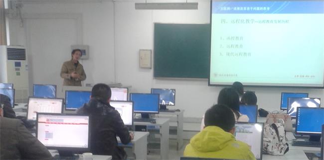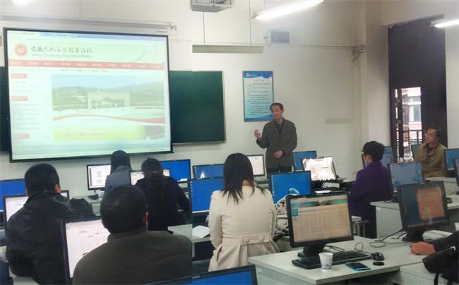 安徽广播电视大学成教在线服务中心主任李翔就网络课程资源建设的基本要求、在线学习平台功能、远程化教学特点及工作流程等进行了系统阐释。安徽广播电视大学工作人员现场演示讲解安徽成教在线学习平台的基本功能,特别对课程设计、课程资源修改完善、作业布置及考试考核环节进行了操作说明。培训中,课程负责人还就利用在线平台开展网上教学及与学生互动所存在的疑问进行了探讨交流。