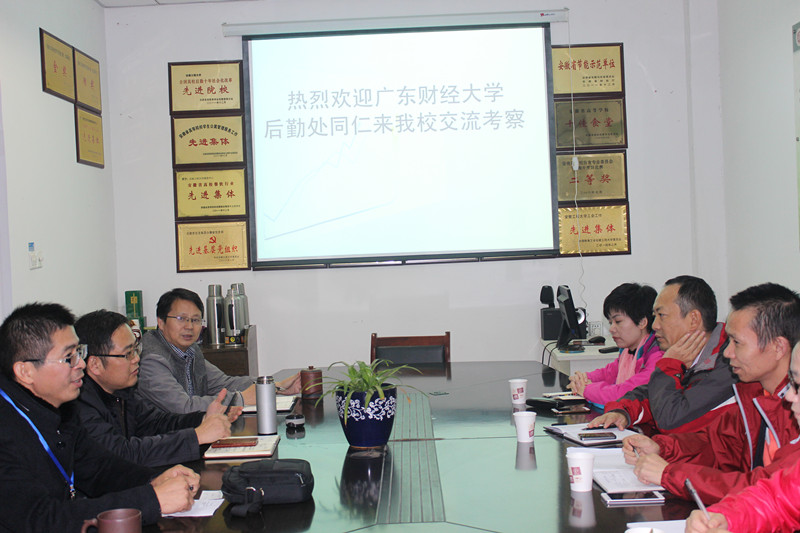 11月18日下午,广东财经大学后勤服务与管理处总支书记杨科龙、公寓中心经理唐旭等一行四人来我校后勤服务集团调研考察。集团总经理魏长顺、副经理李敬华等在集团会议室热情接待了来宾。