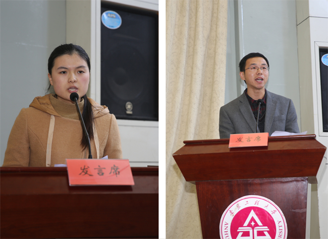 随后,主席台就座领导和嘉宾为各获奖者颁奖。吴小太老师和张青青、练磊同学分别代表获奖的青年教师和学生发言。