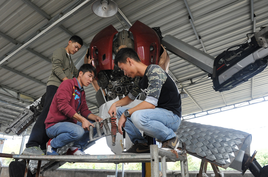 朱文: 在机器人制造过程中受伤是很正常的。虽然可以选择工人焊接,但只有我亲自动手,我才能更快更直接的了解制造过程中存在哪些不足,才能更好的修改完善。