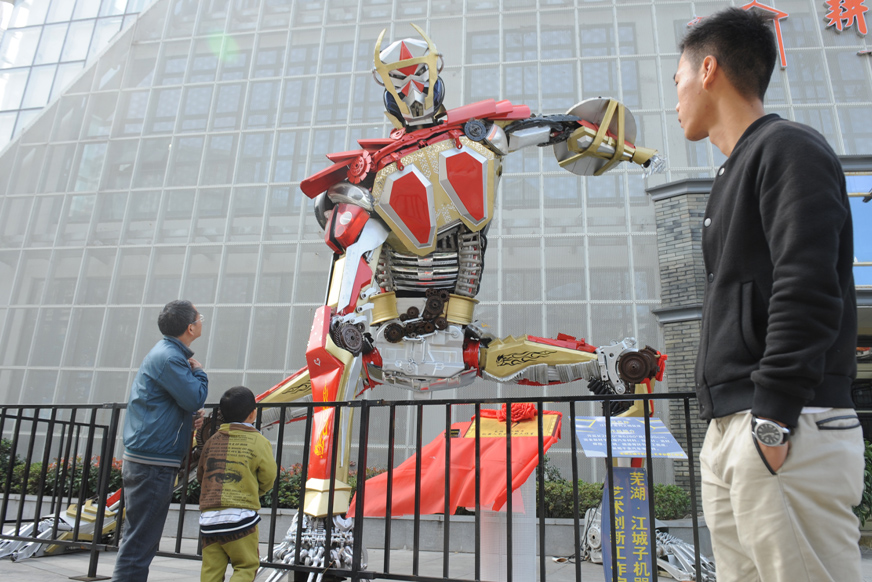 记者:机器人制造中焊接过程危险系数很高,我得知你曾因不小心导致腿部受了伤。既然有工人焊接,为什么你还要亲自动手呢?