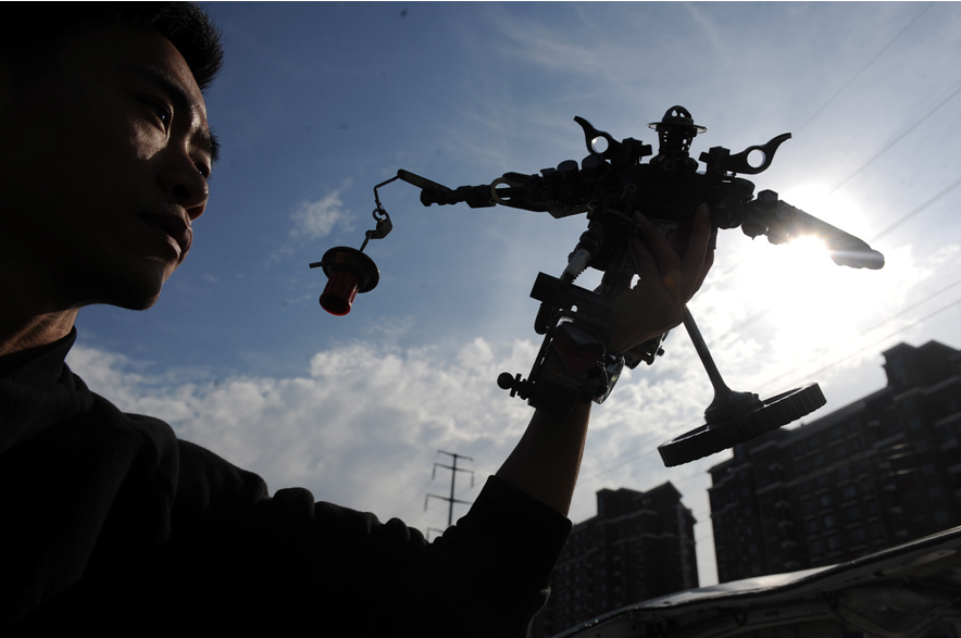 朱文:选择机器人其实是个巧合,有次和同学看了国外的机器人展览,感觉很不错,就抱着试试的想法,开始了机器人的开发。如今,机器人并不少见,机器人的功能有很多,但无论怎样,都会有尚未开发出来的功能,我想做的便是开发出国外所没有的机器人功能。