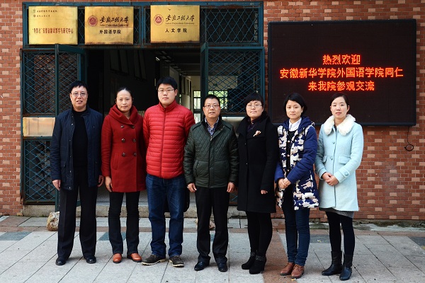 12月1日下午,安徽新华学院外国语学院院长邵玲一行6人来我校外国语学院开展调研交流工作,院党委书记胡长新热情接待了来宾,副院长黄焰结主持了交流会,院教学秘书及英语、日语专业的主要负责人出席了会议。