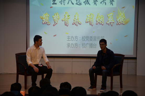 12月5日下午,由校党委宣传部主办、校广播台承办的第十九届普通话暨主持人选拔大赛决赛在学术报告厅举行。校大学生艺术团艺术总监项宁、校团委书记刘一以及校工会副主席张寅红担任比赛评委。校党委宣传部部长孙浩然,副部长吴月红,各学院学生会、学生社团代表及热心同学观看了比赛。