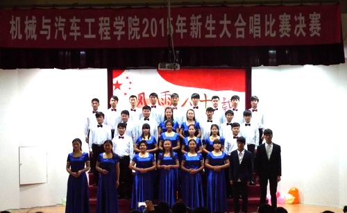 为弘扬爱国精神,重温红色经典,为校庆八十周年献礼,12月6日,机械与汽车工程学院在学术报告厅举办“风雨八十载 唱响机械情”新生大合唱比赛决赛。经过初赛的选拔,共有12支队伍晋级此次决赛。学院党委书记邓英扣、党委副书记周怡、团委书记和新生班级辅导员出席,大赛特邀徐斌全、秦耘等担任评委。