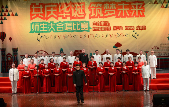 为纪念中国人民抗日战争暨世界人民反法西斯战争胜利70周年,庆祝学校80周年校庆,12月9日下午,我校在师生活动中心举办“共庆华诞筑梦未来”师生大合唱比赛。