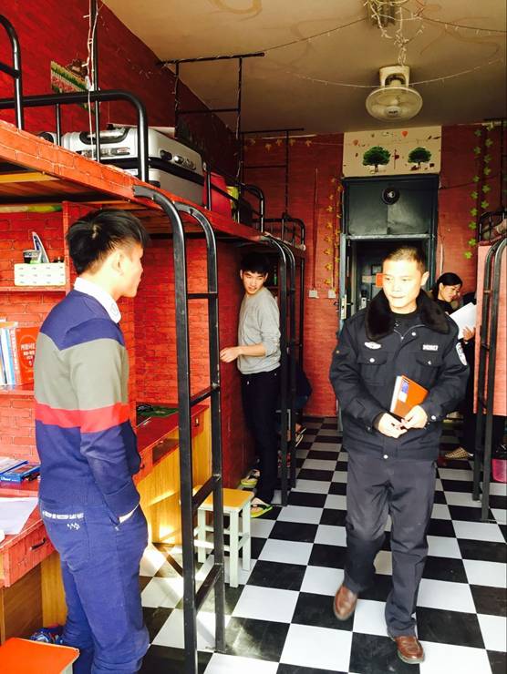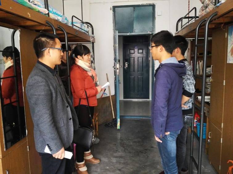 为做好学生宿舍安全与管理工作,规范住宿行为,消除安全隐患,确保学生宿舍的住宿安全,生化学院于12月4日下午在全院范围内开展冬季宿舍安全专项大检查。由保卫处工作人员和学院领导、辅导员组成的安全检查小组对全院四百多个学生宿舍进行了安全大检查。