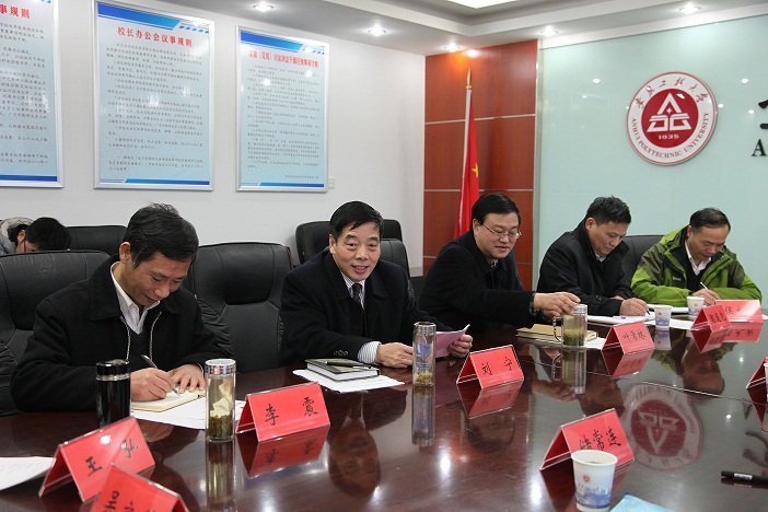 李和平对学校近年来的办学发展给予了高度肯定,认为学校办学凸显了三个特点:一是对地方经济建设需求的敏感度高,学科专业结构调整、创新创业人才培养、科学研究均取得显著成效;二是在顶层设计上观大势、谋大事,积极开展校地校企合作,整合优化办学资源的能力较强;三是校园建设、管理井然有序,校风校貌焕然一新。关于学校下一步发展,他指出,学校应围绕“双一流”、“转型发展”、“调转促”等国家和安徽省重大战略,进一步找准发展定位、创新发展模式、优化发展路径,上好“三个台阶”:一是要“接地气”,继续适应、服务地方经济社会发展;二是要“上水平”,在支撑和引领经济社会发展上做文章;三是要“创一流”,经过“差异化、特色化”发展,在某一个阶段实现弯道超越。