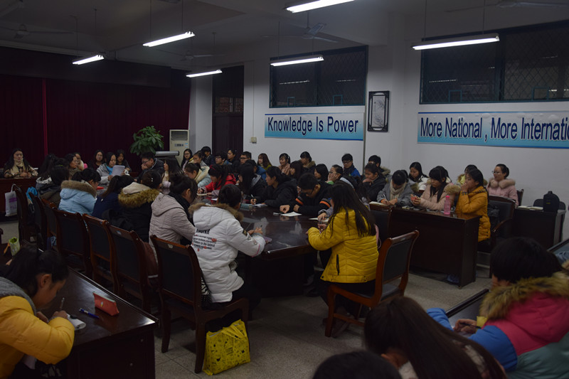 为加强学院院风学风建设,响应学校“12·5要爱我”心理健康活动节,充分发挥朋辈教育的作用,12月10日,外国语学院召开以“关注心理、关爱室友”为主题的寝室文化建设暨心理健康教育讨论会。院党委副书记谈丽华,院团委副书记余本祺,院学生会生活部成员、心理部成员、各班班长、心理委员以及全体寝室长参加了此次会议。会议由院学生会生活部部长唐瑭主持。