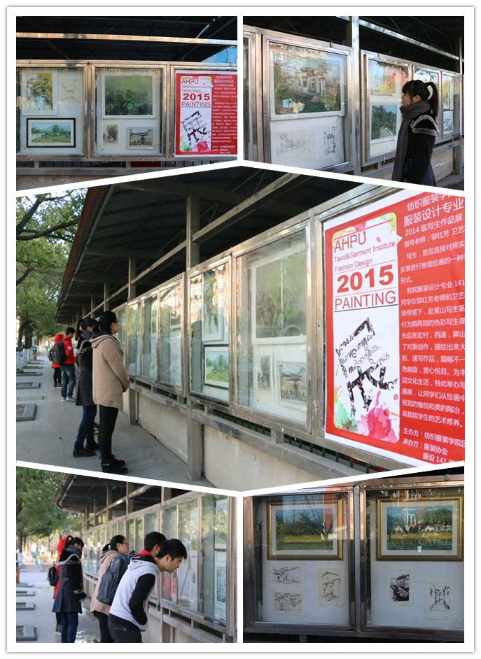 近日,由纺织服装学院团委主办,校服装协会与服装工程与设计(艺)141班承办的纺织服装学院2014级写生绘画作品展圆满落幕。本次展示的98幅作品均挑选自服艺141班的色彩写生课程作业,作品展自11月下旬起在校学生宿舍区三食堂橱窗处进行了一个月的集中展示,吸引了大量师生驻足观看。