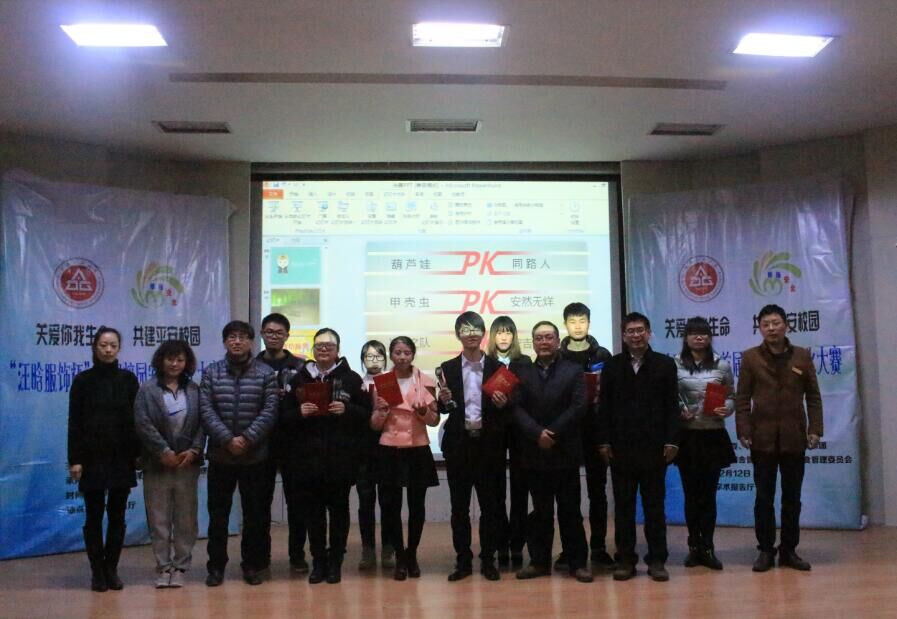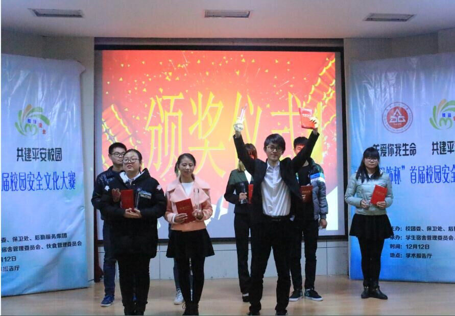 关爱你我生命,创建平安校园。12月12日,由校团委、保卫处、后勤服务集团主办,校学生宿舍管理委员会和伙食管理委员会承办,各学院学生会协办的“汪晗服饰杯”首届校园安全文化大赛决赛在学术报告厅成功举行。后勤服务集团总经理魏长顺等活动主办单位相关领导及各学生组织观看了本次比赛。