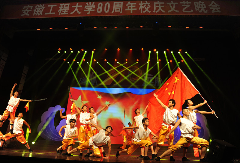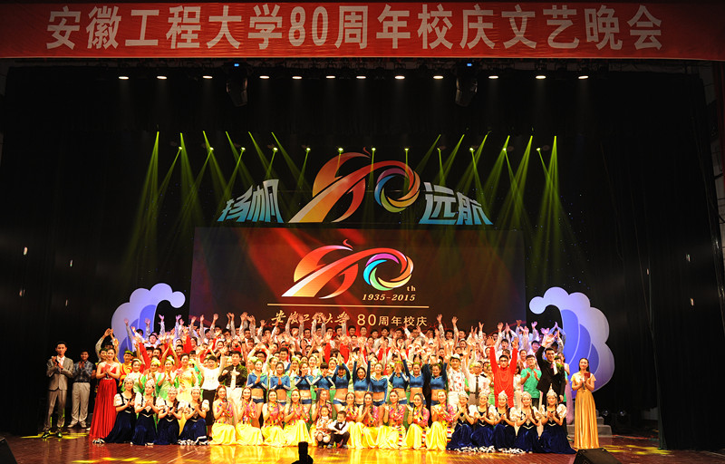 晚会前,学校精心制作的80周年校庆宣传片深情展现了学校八十年的沧桑变迁、八十年的薪火相传、八十年的辉煌成果、八十年的传承积淀以及对未来的展望,让在场观众沉浸在对学校八十年历史与辉煌的感喟中。体育学院舞蹈团带来的开场舞《欢聚一堂》满载了师生校友相逢相庆的喜悦兴奋,表达了对母校的殷殷祝福。歌曲《共筑中国梦》用优美的旋律唱出我校师生的中国梦、强校梦。老教师交响合唱《夕阳红》和《革命人永远年轻》则深刻反映了一代代安工程教师长期以来献身科教事业的精神脊梁,彰显出一届届安工程学子践行“尚德敏学,唯实惟新”的校训,投身革命、勇担使命的责任感和敢于创新、奋发向上的时代精神。配乐朗诵《扬帆远航》高度概括了安工程八十年来发展形成的学科特色和办学使命,追述了八十年的辉煌历史,再现安工程当今的灿烂成就,绘写安工程明天的华丽篇章。情景歌舞《老师的肩膀》唱出了安工程在校学生对学校、对老师的浓浓的感恩之情。歌曲联唱《青春记忆》用青春的歌声唱出了校园美好的诗画年华,唤起不同年代的校友对求学岁月的美好回忆。