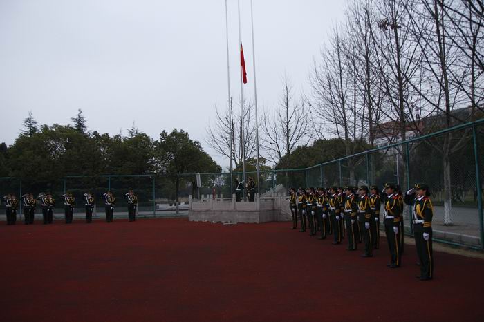 上午7:00,我校举行了庄严的升旗仪式。国旗班的升旗手迈着整齐矫健的步伐护送国旗来到旗杆下。在激昂的国歌声中,鲜艳的五星红旗冉冉升起,高高飘扬在操场上空。校友和师生代表在神圣的国旗下肃立注目,展现了爱国荣校的情怀。