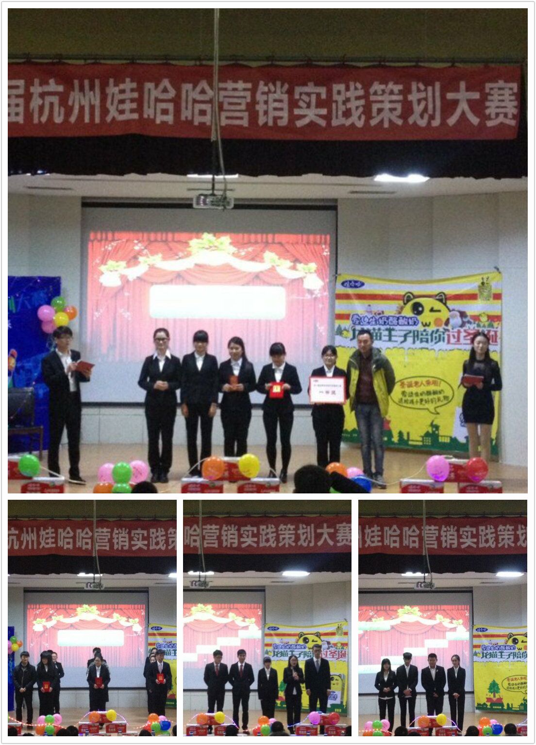 由校团委主办,管理工程学院团委和营销协会承办,安徽师范大学创业协会、芜湖联大、芜湖机电职业技术学院和安徽商贸职业技术学院联合协办,杭州娃哈哈集团赞助的五校营销策划大赛总决赛于12月25日晚在学术报告厅顺利举办。娃哈哈集团代表、安徽机电职业技术学院市场营销教研室主任徐大伍、管理工程学院李国富、邱述兵、张晓东老师担任评委,学院团委、办公室负责人和全体辅导员老师到场观看了比赛。
