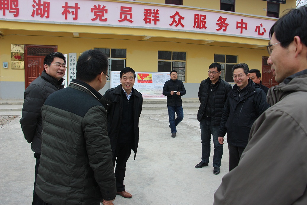 顶着严寒,刘宁一行轻车简从,来到我校对口帮扶乡村支河乡鸭湖村田间地头,实地查看了鸭湖村村容村貌,走访查看了鸭湖小学和正在建设的村文体活动场地,在村委会和村两委班子成员、驻村扶贫工作队成员开展座谈,听取鸭湖村脱贫工作汇报。埇桥区副区长王德润、支河乡党委书记张明、乡长谭现亮等陪同调研。刘宁校长对鸭湖村脱贫工作思路规划及一年来鸭湖村驻村扶贫工作队的工作给予充分肯定,对学校驻村干部一年来的工作给予肯定,并勉励其在区、乡两级政府领导下,从鸭湖村村情出发,与村民同心,如期做好脱贫工作;学校一直高度重视帮扶工作,全力利用人才优势、智力优势,在“十三五”规划中把帮扶埇桥区作为一项重要工作谋好篇,开好局。