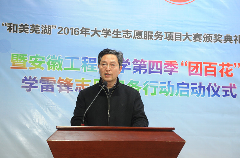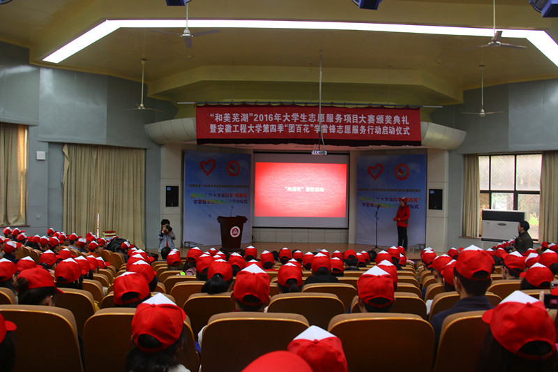 3月4日下午,“和美芜湖”2016年大学生志愿服务项目大赛颁奖典礼暨RayBetApp官网下载 第四季“团百花”学雷锋志愿服务行动启动仪式在学术报告厅举行。芜湖市民政局副局长刘萍、校党委书记陈其工、副校长郭兴众和校党委宣传部、学生处、校团委、马克思主义学院负责同志等出席仪式。仪式由校团委书记刘一主持。