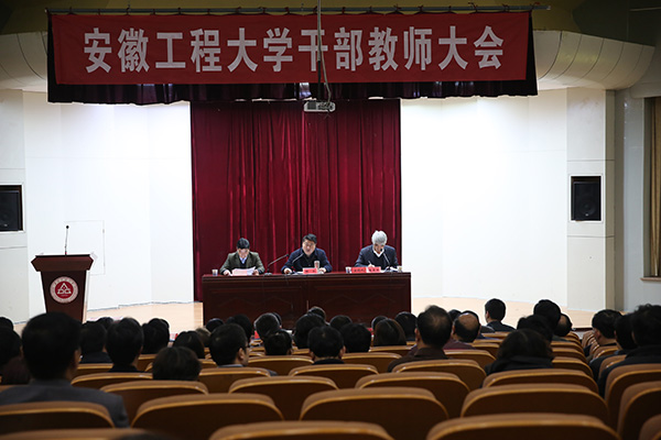上午8:30,学校在学术报告厅召开干部教师大会。学校党政领导班子成员,机关部门副职以上干部,学院党政正职(含主持工作副职),省级以上“两代表一委员”、民主党派市级以上主委、学校教代会执委、正高职称人员,学生代表等110余人参加了会议。会议由校党委书记陈其工主持。