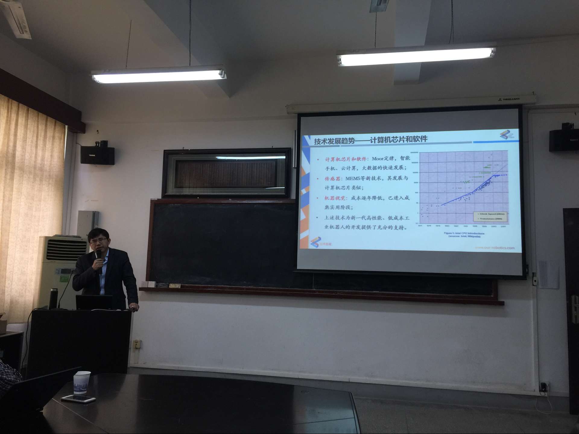 魏洪兴教授的报告主题为“新型人机协作机器人研发与应用”。报告中魏洪兴从传统工业机器人到协作机器人的转型以及如何实现协作机器人的技术创新的两大方面出发,介绍了机器人工业当前发展现状,协作机器人的应用前景,重点分享了在协作机器人研究方法、项目和成果。报告结束后,魏洪兴希望与会研究生,在学习、科研中要选定一个方向坚定不移,机会永远是留给有准备的人。