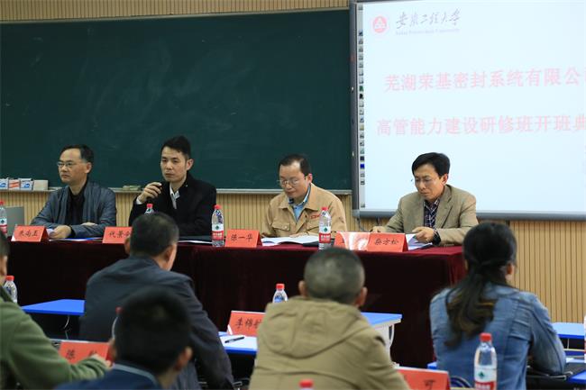 4月9日,继续教育学院举办荣基密封系统公司高管培训研修班开班典礼。学院院长朱尚玉、芜湖县人力资源和社会局副局长代景全、荣基公司人力资源部经理陈一华出席典礼。学院副院长柴方松主持典礼。