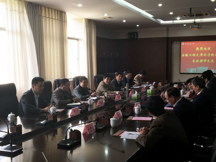4月12日,校长刘宁带领发展规划处、科技处、研究生部、宣传部、人事处、教务处等相关职能部门领导前往安徽工业大学就学校事业发展”十三五”规划编制等工作开展调研。刘宁一行受到了安徽工业大学党委书记刘新跃、校长李家新、副校长顾明言热情接待。