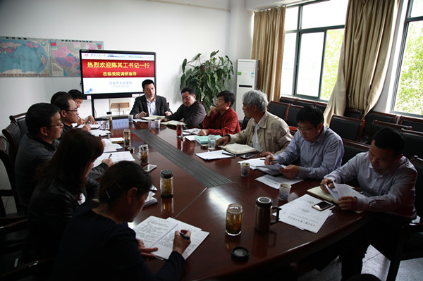 4月14日下午,校党委书记陈其工、纪委书记汪奇燕到马克思主义学院开展专题调研,校宣传部、教务处、人事处、财务处等部门负责人参加调研。