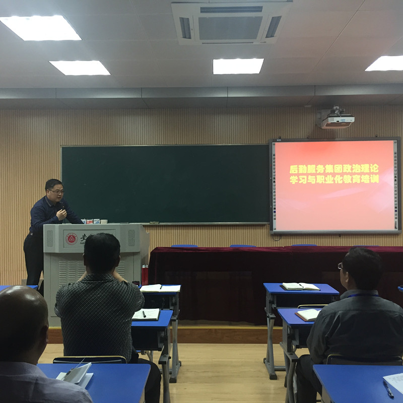 为切实加强和改进集团党风廉政建设与职业化建设工作,不断提高集团广大干部职工的思想政治素质、政策理论水平、职业意识、职业技能和拒腐防变能力,建设一支政治素质好、服务意识强、职业化程度高、勇于改革创新、甘于默默奉献的后勤队伍,促进我校后勤服务保障工作上水平、上台阶,4月14日下午,在五教录播教室,后勤服务集团举办政治理论学习与职业化教育培训会。后勤服务集团科以上干部、各中心骨干、托管单位负责人、职代会代表共35人参加。培训会由集团副总经理李敬华主持。