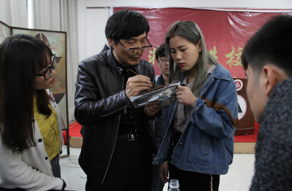 展览伊始,来自无为县的剔墨纱灯传承人朱晓钟,就剔墨纱灯文化历史作了简介。关于剔墨纱灯的未来发展,他希望更多的大学生能够加入其中,将剔墨纱灯与现代艺术设计相结合,为剔墨纱灯的传承和发展注入新鲜血液,让这一古老艺术焕发新生。为让同学们更好地了解剔墨纱灯及其制作工艺,朱晓钟现场向大学生演示了纱灯的整个制作过程,并细心指导学生现场制作。经过师徒共同努力,一个个精美纱灯在同学们的手中诞生。