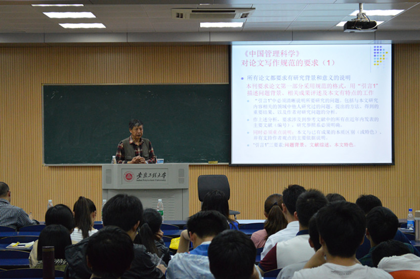 4月15下午,应管理工程学院邀请,《中国管理科学》主编蔡晨研究员在五教116录播厅作了题为“《中国管理科学》期刊简介与高水平论文写作”的学术报告。学院党政领导及部分教师和研究生聆听了报告。报告会由院长王忠群主持。