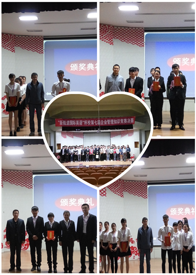“大学生现代企业管理知识竞赛”是我校大学生文化艺术节品牌活动之一,在前期的宣传动员中有200多名学生报名参加初赛,经过知识赛考试以及复赛的选拔,最终六组选手脱颖而出,进入决赛。决赛分为:“我是总经理”--PPt演示;“我是智多星”--问答题;“我是分析师”--视频案例分析题;“我是挑战王”—风险题;亲友团答题五个环节。各组选手通过精彩的PPT展示、答辩以及答题环节,向观众展示了他们对现代企业管理知识的理解和掌握;案例分析环节,选手们独特的见解,以及风险答题环节的临场发挥得到评委老师的鼓励和肯定。经过激烈的比拼,最终“长青队”获得比赛一等奖,“同路人队”、“梦想队”获得二等奖,“I CEO队”、“Fire组合”、“企管英才队”获得三等奖。
