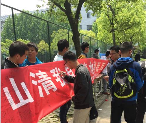4月28日,预备党员培训班第一、二、三组成员在校各食堂门口,开展了以“爱护公共环境,共建美好校园”为主题的志愿环保活动。通过向同学们发放制作精美的校园环保卡贴、邀请同学们在宣传横幅上签字等方式,宣传保护校园环境的重要性。倡议从自身做起,从小处做起,共同保护校园环境,该活动得到广大同学的支持和赞许。
